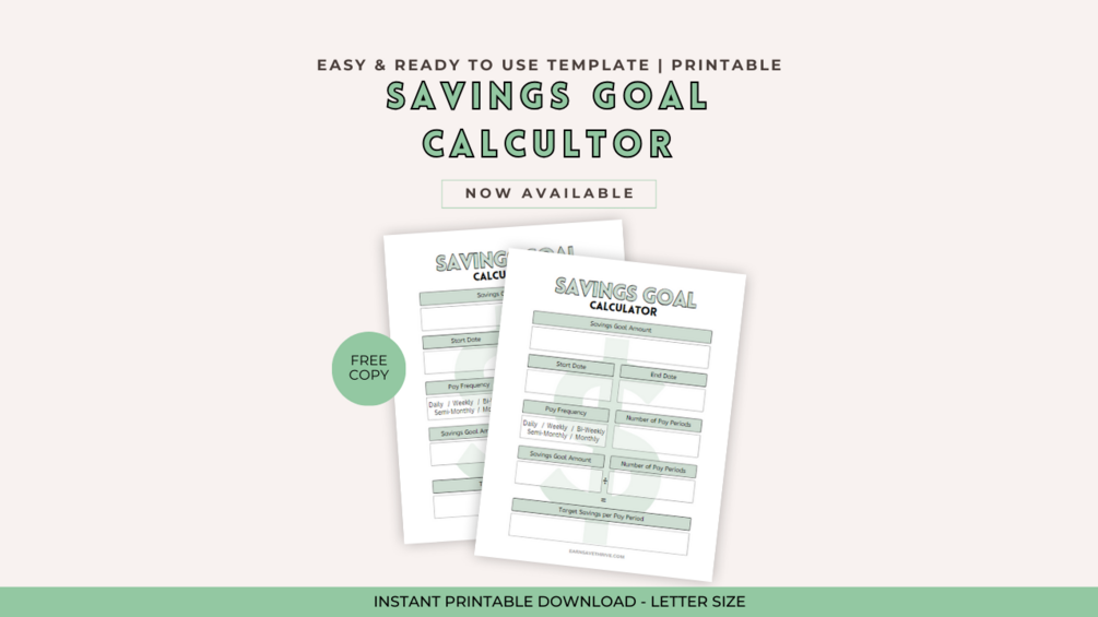 Savings Goal Calculator | Printable, Instant Download PDF
